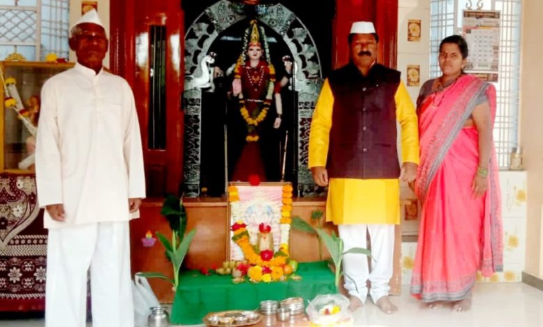(संस्थापक-अध्यक्ष=श्री विश्वकर्मा संघटना-अकलुज)मयुरीताई यशवंत कळसाईत यांच्या हस्ते श्री विश्वकर्मा प्रतिमेचे पूजन व आरती करण्यात आली.यशवंत (आबासाहेब) अर्जुन कळसाईत